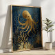 Poster Navy Blue& Gold Kintsugi Octopus Underwater