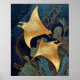 Poster Navy Blue& Gold Manta Rays Elegant Kintsugi Art