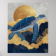 Poster Navy Blue& Gold Sea Turtle Kintsugi Underwater