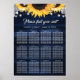 Poster Navy Blue Wood Sunflower Wedding Seating Chart 12