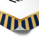 A rich navy and gold design with diagonal stripes surrounding a gold frame. The outer pattern adds a touch of movement while the open center keeps the look clean and balanced.