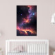 Uma nebulosa vibrante enche a extensão escura do espaço, brilhando com uma mistura de matizes cor-de-rosa, roxa e laranja. A nebulosa é composta por nuvens giratórias de gás e poeira, iluminadas por uma estrela central brilhante. Espalhados na canvas estão incontáveis estrelas, brilhando à distância. A imagem evoca uma sensação de admiração e admiração, capturando a beleza e a vastidão do cosmos.