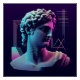 Escultura grega clássica com a estética vibrante e nostálgica do movimento vaporwave dos anos 1980.