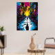 Entra numa vívida paisagem de sonho distópica com este espantoso trabalho de arte da cidade neon, apresentando uma figura solitária a caminhar por uma rua vazia e rachada em direção a um horizonte de ouro. O ousado contraste entre azuis elétricos, amarelos de fereria e púrpuras profundas cria uma atmosfera de mistério, solidão e intensidade cinemática. Perfeito para amantes da estética ciberpunk, mundos de fantasia escura e paisagens futuristas, esta peça captura o sentimento de caminhar para o desconhecido, perseguindo a luz através da escuridão.