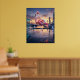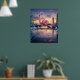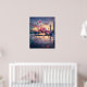 A striking neon flamingo stands elegantly in shallow reflective water at a futuristic marina. Metallic feathers, glowing contours, and radiant pink, coral, magenta, cyan, and gold tones create a luxurious tropical look. Glass docks, sleek yachts, skyline towers, soft ripples, lantern lights, and warm sunset haze surround the poised bird. This stylish futuristic flamingo design blends glamour, serenity, and coastal sophistication, perfect for modern interiors, beach homes, bedrooms, and gifts for bird or travel lovers.