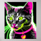 Um retrato vibrante e inspirado em neon de um gato curioso. Este trabalho de arte digital mostra cores ousadas e linhas marcantes (Este Design é feito com IA). Faça a ordem hoje e encare a alegria de Comprar!