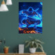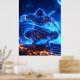 Um misterioso guerreiro neon se agacha na escuridão, coberto de energia azul brilhante, pronto para atacar com sua katana. Seus olhos luminescentes piercantes brilham debaixo de sua capa como faíscas da dança de fogo elétrico ao seu redor. Contra um horizonte futurista ciberpunk, este ninja high-tech incorpora a combinação perfeita de furor, velocidade e potência bruta, fazer-a uma peça essencial para fãs de ficção científica, ciberpunk e estética neon.