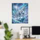 A majestic neon snow leopard stands atop a towering glacier spire, crafted from sleek fur armor textures, glowing frost lines, and luminous feline contours. White, cyan, silver, and icy blue light pulse through its agile frame while piercing eyes survey the frozen horizon. Crystal peaks, drifting snow, aurora skies, fractured ice, and cold mist create breathtaking depth. This premium predator design blends elegance, power, and arctic sci-fi atmosphere, ideal for offices, gaming rooms, and big cat collectors.