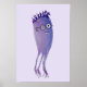 poster de monstro de águas-vivas geek com uma aquarela ilustrando um sorridente personagem púrpura azulado com óculos de nerd, tentáculos, dentes grandes e cabelo engraçado. Esta design de monstro engraçada apelará a pessoas que adoram arte divertida, bobo, geeky.