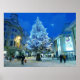 Neve em Cardiff. A Lua brilha em uma rua Rainha nevada A árvore de Natal repleta de neve recém caída. Cardiff 17/12/2010