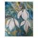 Os mensageiros de primavera, três flores de queda de neve em um fundo de esmeralda azul, com tons gelados metálicos.