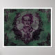 This vintage style portrait of Edgar Allan Poe references his most famous story "The Tell Tale Heart" and most famous poem "The Raven".