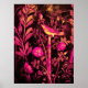 Pôster NIGHTINGALE WITH ROSES, Pink Fuchsia Black Yellow