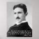 Nikola Tesla cita poster - "O desejo que me guia em tudo que faço é o desejo de usar as forças da natureza ao serviço da humanidade." No início dos anos 1900, foto-retrato do genial inventor Nikola Tesla.