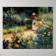 "No Jardim" é uma representação vibrante da vida ao ar livre. A cena retrata um jardim exuberante cheio de flores florescentes, onde uma figura de solteiro está desfrutando leisamente do ambiente sereno. A figura central, muitas vezes considerada esposa de Monet, Camille, é o carregando de um cesto de flores rodeado de uma profusão de flores coloridas. A pintura é caracterizada pelo seu rico uso de cor, luz deliciosa e a delicada interação entre sombra e luz solar, que cria um senso de calor e tranquilidade. A bruxaria solta e a atenção aos efeitos da luz sobre os elementos naturais refletem um estilo impressionista, enfatizando a beleza dos momentos cotidianos passados na natureza. Esse trabalho captura a essência de uma tarde pacífica e iluminada pelo sol num jardim, onde a vibração das flores e a atmosfera suave se combinam para criar uma cena eterno de relaxamento e contentamento.
