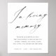 Em Loving Memory Sign - Um simples e chic sinal para ser colocado na sua mesa memorial de recepção de casamento ou exibição honrando os entes queridos que passaram. Personalize com os nomes dos seus entes queridos mortos, se desejado.