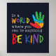 Uma poderosa e modesta impressão de arte motivacional com a citação Num Mundo onde você pode ser qualquer coisa, Seja gentil em cores do arco-íris com uma ilustração de quebra-cabeça de mira multicolorido.