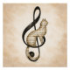 A poetic illustration of a cat formed from aged sheet music, resting within a treble clef. A quiet, vintage-inspired piece exploring music, stillness, and attentive silence.