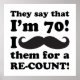 Uma hilária ideia de presente de gag de aniversário que diz: "Dizem que tenho 70 anos, eu os bigode para uma recontagem!"