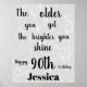 Poster de Apelido de Cinza de 90 de Silver Sparkle personalizado de Aniversário Adicionar nome.