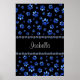 Poster Nome personalizado, patas de cachorro brilho azul