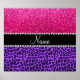 Ideias modernas e modernas de leopardo. Púrpura de fundo do padrão de impressão de animais leopardo e brilho rosa-néon (não brilho real) de diamantes negros stripe (diamantes falsos, não real) com corações e pontos personalizados com seu nome presentes ou presentes monográficos ou suas iniciais. Ideal para aniversários, casamentos, festas e muito mais com uma elegante e tradicional letra de rico.