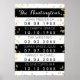Poster da família moderna e Chic com os nomes e datas importantes dos membros da sua família sobre listras negras e brancas e confete dourado.