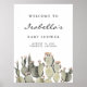 Este sinal de boas-vindas do chá de fraldas apresenta cactos de cor aquosa boêmica picante e design mínimo. Todo o texto é editável para corresponder a qualquer necessidade de evento - chá de fraldas, chá de panela, fim de semana de folhetos, etc.