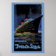 Vintage poster de viagens de linha do oceano para a Normandia, classificada como "O navio mais perfeito do mundo".