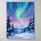 Poster Northern Lights | Mountains Winter Watercolor