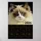 Striking 2026 wall calendar featuring a long-haired Norwegian Forest Cat with a luxurious coat and noble gaze. Set beside a textured wall and framed by a dramatic black background, this elegant feline portrait adds depth and warmth. Below, all twelve months are displayed in a clean yellow grid, blending visual beauty with everyday utility. A perfect choice for cat lovers, nature-inspired interiors, and those drawn to majestic animal imagery.