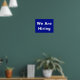 Um poster azul moderno para uma janela da loja notificando o público de que você está contratando um novo funcionarios.