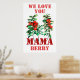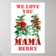 Adoramos-te MAMA BERRY, pintura de aquarela de lindas amoras vermelhas. Lindo motivo para o dia de as mães, para a mãe, para a avó ou para a mãe ser.