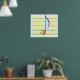 Uma nota musical de solteiro colocada em uma linha de funcionarios amarelo. Esta design parece realmente eficaz nesta Poster