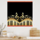 Tons de ouro elegantes notas de música e design de piano de abstrato com faíscas