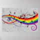 Notas musicais negras flutuando num arco-íris de cores giratórias numa cinza com notas musicais de cinza mais escuras. Perfeito para o amante da música. sgb01