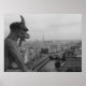 Um dos ícones icônicos de Notre Dame. Ele olha pela cidade de Paris, a Torre Eiffel ao fundo.