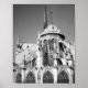 Foto em preto e branco de Notre Dame em Paris.
