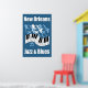 Posters coloridas de jazz New Orleans e blues para fãs de jazz e blues. Músico único de jazz com saxofone e design de teclado em duas variações de cor.