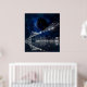 A ponte Nova Iorque manhattan à noite! Uma grande lua azul aparece no céu. A noite aparece em uma luz azul escura. Uma cena incrível do horizonte de fantasia! Clique em Personalizar para personalizar o produto presente! Preencha suas informações na modelo. Ou apagar sem texto.