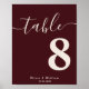 Poster Número da Mesa de Casamento Borgonha e Marfim