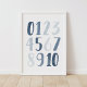 Poster Números de Aquarela Azul Decoração de Berçário Edu