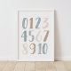 Poster Números de Aquarela Azul Decoração de Berçário Mas