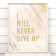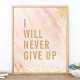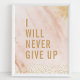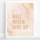 Nunca Desistirei Cartaz de Citação de Mármore Rosa Dourado. Design de citação motivacional inspirador de tipografia de mármore personalizado trendy. Este design de garota feminina tem um fundo de mármore rosa com detalhes dourados. Motive-se a trabalhar duro e se esforçar!