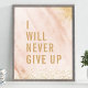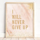 Poster Nunca Desistirei Citação de Mármore Rosa Dourado