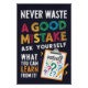 Esta poster de "Nunca Desperdiça um Bom Erro" vibrante e motivacional foi projetada para inspirar uma mentalidade de crescimento e autorreflexão tanto em estudantes quanto em indivíduos. O texto colorido e as imagens divertidas, incluindo um lápis e pontos de interrogação, encorajam os espectadores a aprender com os erros e a vê-los como oportunidades de crescimento. Ideal para salas de aula, escritórios ou qualquer espaço onde a motivação e o desenvolvimento pessoal são priorizados. Um lembrete de que erros são simplesmente passos no caminho do sucesso.