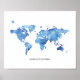 Pôster Nunca Pare de Explorar Mapa do Mundo Azul Impressã