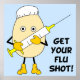 Get your flu shot text with an egghead nurse holding a large hypodermic needle is a humorous reminder for preventative medicine and a funny gift design for medical professionals.