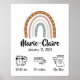 Poster de decoração de berçários de boho bonito com estatísticas de natalidade e um arco-íris de aquarela. Ideia de presente única para recém-nascidos.