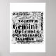Dê vida às suas paredes com este Poster de Nuvem de Palavras Zodiac Gemini, projetado para aqueles que prosperam com ideias, expressões e curiosidade. Apresentando uma nuvem cuidadosamente organizada de traços chave do Gemini, como Talkative, Witty, Inquisitive e Adaptable, este poster celebra a essência deste signo de ar dinâmico. Perfeito para quartos, dormitórios, espaços de meditação ou altares com tema astrologico, oferece apelo visual e inspiração cheia de alma. Seja você um orgulhoso Gemini ou um amigo que ama o zodíaco (21 de maio a 20 de junho), este poster faz parte da série Zodiac Soul mistura arte, energia e identidade. É uma maneira vibrante de afirmar seus traços astrológicos e criar um ambiente que ressoe com seu ritmo cósmico.